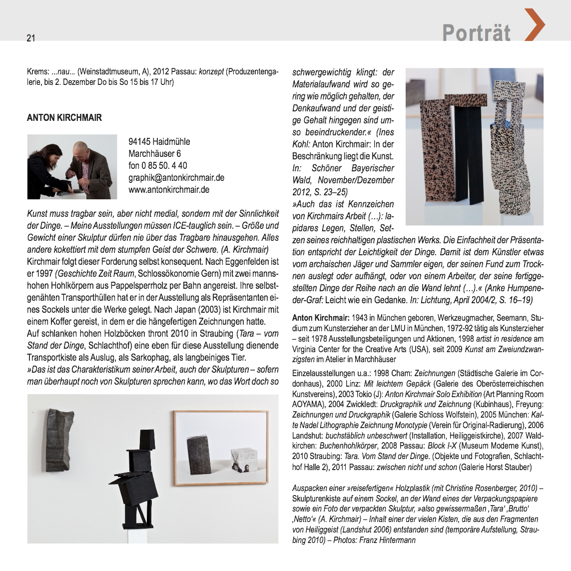 Anton Kirchmair home aktuell Werk Ausstellung Veranstaltung Ankauf Vita Presse Kontakt