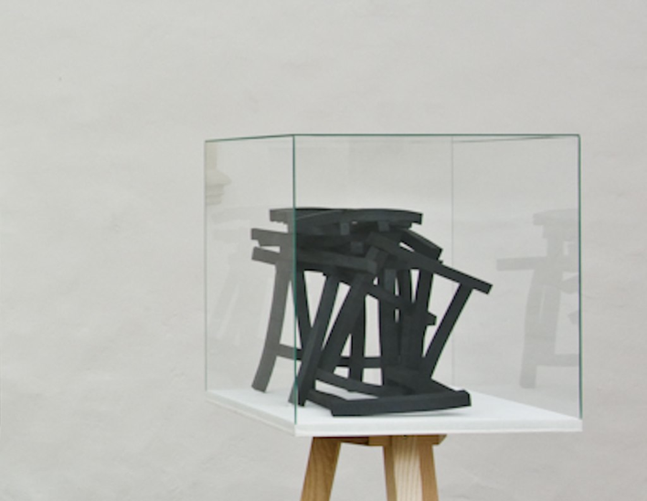 Uns bringt er in Bewegung. Versetzt uns in Schwingung, indem wir die Kapelle einmal umrunden müssen, um die Bilder zu lesen, und uns bei jedem der sieben Abschnitte und bei jeder der neun Glaswürfel noch einmal um die eigene Achse drehen müssen, um sowohl den Zeichnungen als auch dem Spiel der schlanken, schwarzen Akteure folgen zu können, denen wir sonst den Rücken zudrehen. So wie Cennini und seine Zeitgenossen einst die Figuren aus ihrer jahrhundertelangen Vereisung holten, so macht Kirchmair uns zu Handelnden – fordert uns auf zum stillen Reigen, bittet uns zum Tanz.