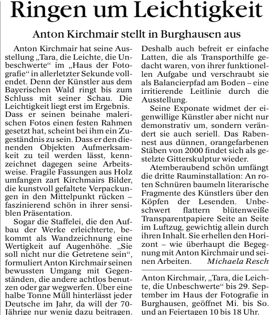 Anton Kirchmair home aktuell Werk Ausstellung Veranstaltung Ankauf Vita Presse Kontakt